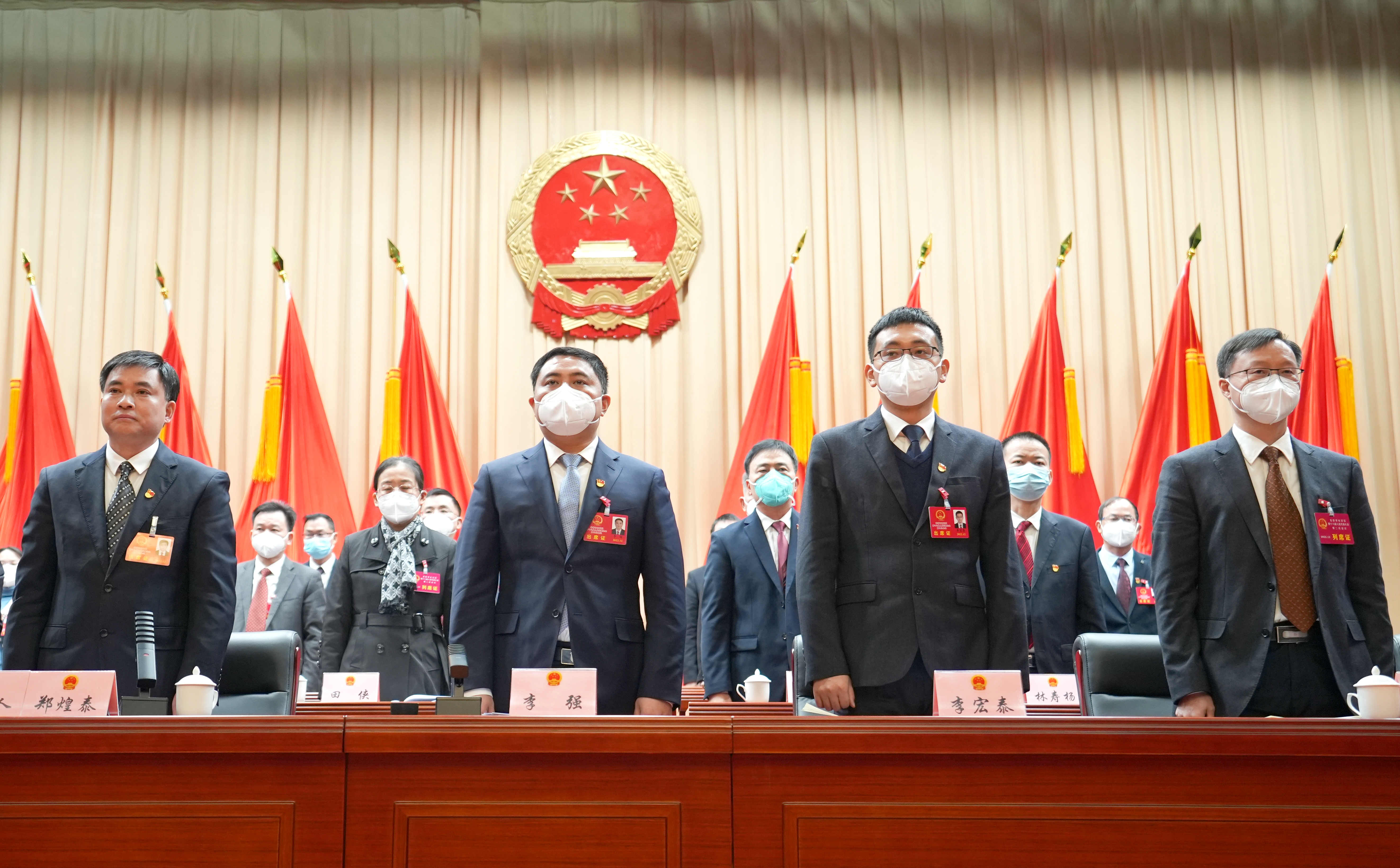 在圆满结束各项议程后,大会在雄壮的国歌声中胜利闭幕!