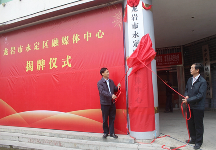 揭牌仪式 永定新闻网讯 (刘琦)11月19日,永定区融媒体中心正式挂牌成立。龙岩市委宣传部副部长吴福文,区委副书记、区长陈荣水,区委常委、宣传部部长曾佑繁,区人大常委会副主任赖秀金,副区长詹萃芳,区政协副主席翁海东,省广电网络集团龙岩分公司总经理易明金,区相关部门负责人等参加了揭牌活动。 永定区融媒体中心的成立是永定区响应党中央号召,为更好地服务好区委区政府中心工作,按照聚合台网资源、调集融媒人才、集成先进科技的原则,所成立的区级融媒体平台。该中心由中共永定区委报道组、永定电视台、永定人民广播电台、《永定乡讯》社、《今日永定》编辑部等单位整合而成。组建后将有员工40余人,主要负责全区中心工作的融媒体策划、全媒体采访、大数据运维、内容提升、精品打造等,具体包括“中央厨房”日常运行、采访队伍调度指挥、原创作品策划与生产、数据与用户的运维运营、全媒人才培训培养等相关工作。