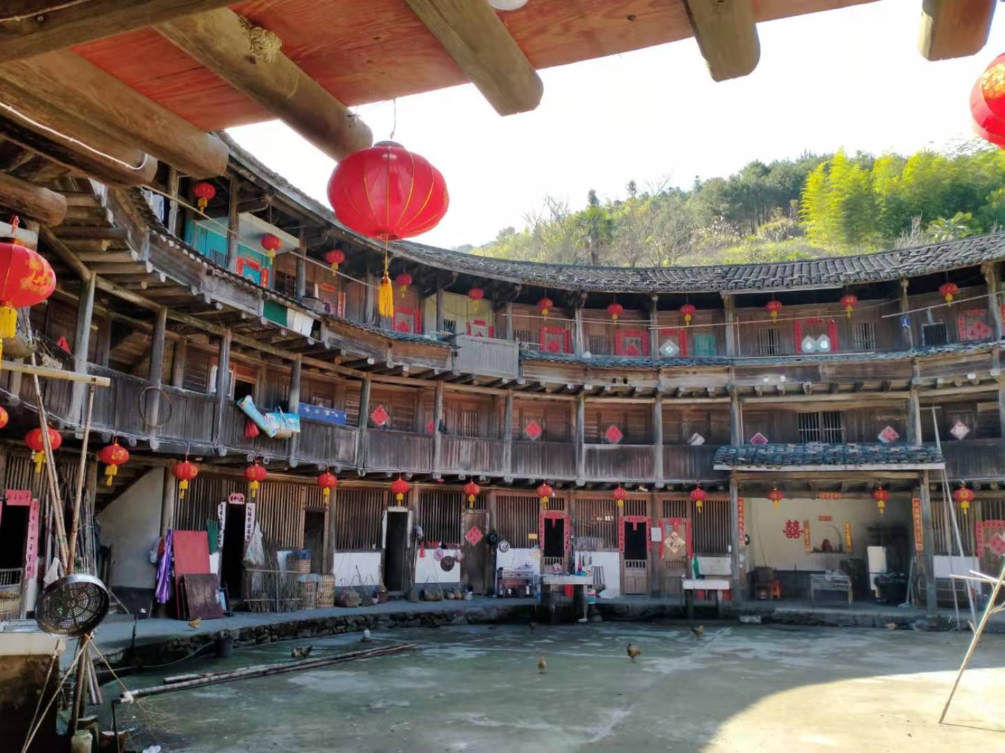 湖坑:土楼高挂红灯笼