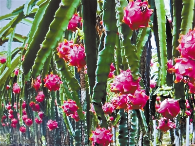 夫妻俩种植的火龙果硕果累累。 严德钦种果成功后,带动了全村和其他村的100多户村民种果,如今,龙潭镇全镇种果面积达到了1000多亩。龙潭镇党委书记吴才开由衷而感慨地说:“严德钦这个煤老板发展转型成功后,带动了很多煤农参与其中。现在,树葡萄、百香果,还有茂谷柑等高优农业遍地开花,乡村也更美了,生态也越来越好了,老百姓的收入也更稳定了。真正践行了习近平总书记绿水青山就是金山银山的理念。” |