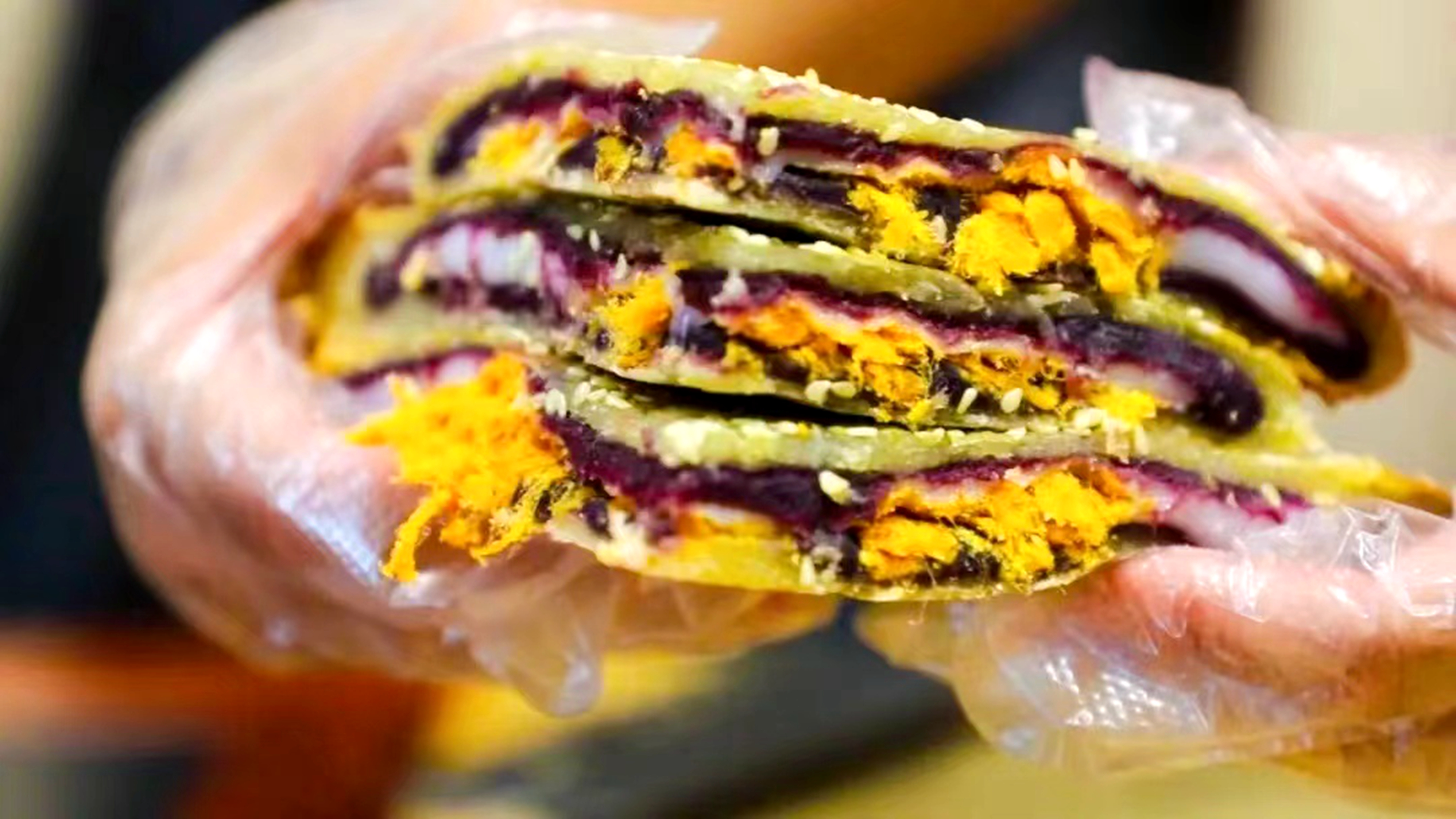 月饼厂的负责人蔡壮伟从16岁开始学做高陂月饼,至今已经做了40多年,始终不忘初心,恒心制好饼。 中秋赏月与品尝月饼,是家人团圆的象征。发展至今,吃月饼已经是中国南北各地过中秋节的必备习俗,中秋节这天人们吃月饼以示“团圆”。但随着时代变迁,口味变化,传统文化也不断体现时代内涵。近年来,月饼出现了创新变化的趋势,蔡师傅也没有停滞不前,而是积极拥抱时代变革潮流,主动了解年轻人的消费需求,开发出更适应新时代的品类。 “这个新品研发其实我们也经历了很多,我们有去调研,发现年轻人比较喜欢紫薯肉松、麻薯还有咸蛋黄这一类的口感,我们就想把传统跟现代化的一个结合,于是我们就采用了传统的一个饼皮,制作成我们现代年轻人喜欢的一个口感,但是这几种原材料综合在一起,它本身就是属于说比较偏甜的一种口感,那我们在制作的时候,是以低糖呈现在我们的这个唇齿里面。” 高陂奇奇食品厂销售部负责人蔡青说。 “创新月饼”的内核没有改变,创新的是其他外在元素,这就使得传统文化得以凝聚。时代在变,但高陂月饼的乡愁味道没变,坚守诚信没有变。现如今月饼制作很多都在机器流水线上完成,但一代代高陂月饼师傅相信,冰冷的机器代替不了手掌的温度。虽是新品,蔡师傅也依然坚持传统手工制作。 “与时俱进,不断创新,我们增加了新口味‘网红月饼’,吸引更多的年轻群体,这样我们的受众更广泛。所以作为传统月饼手艺人,品质第一,不断创新,才能在市场上立足。” 蔡壮伟说。