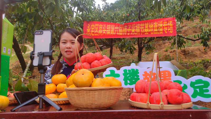 视频加载中... 永定新闻网讯(黄秋萍 陈景彬) 又是一年金柿累累、坠满枝头的季节。9月23日,永定区高头镇大岭下村第六届柿子丰收节在柿子园“云端”热闹开启。永定区农产品带货主播赖春兰和数万名“游客”在网络直播欢聚,共庆丰收。