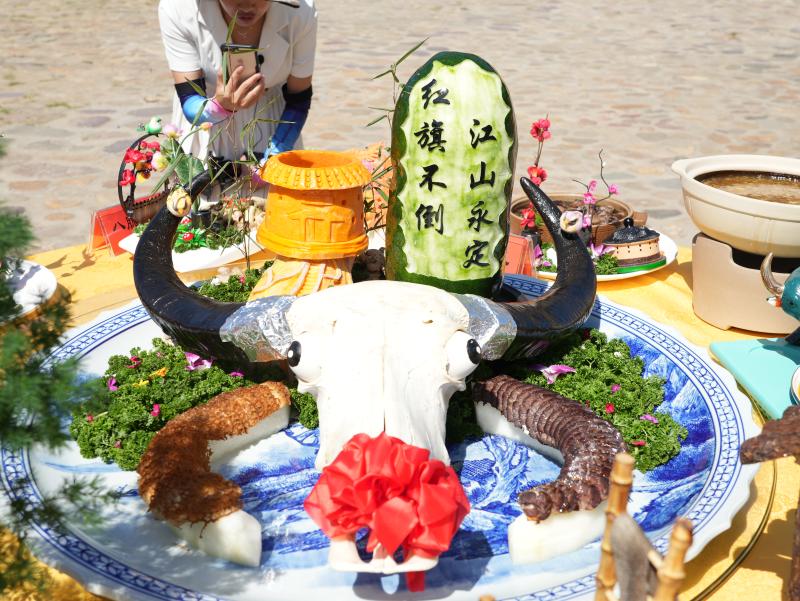 永定新闻网讯(邱颂桥 汤浩宇 吴宇梁)10月25日,永定区在“土楼王子”振成楼举办永定“全牛宴”美食选拔赛。大赛以“永定归来不食牛”,“一区一桌菜”全牛宴为主题,全区6家餐饮单位参加比赛。大厨们各显其能,花样繁多的造型,创意新奇的烹制手法,在他们的巧手烹饪下,一道道别致的大餐呈现在众人面前。区领导李强、李宏泰、田侠、吴文琴到现场观摩了比赛。
