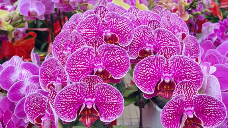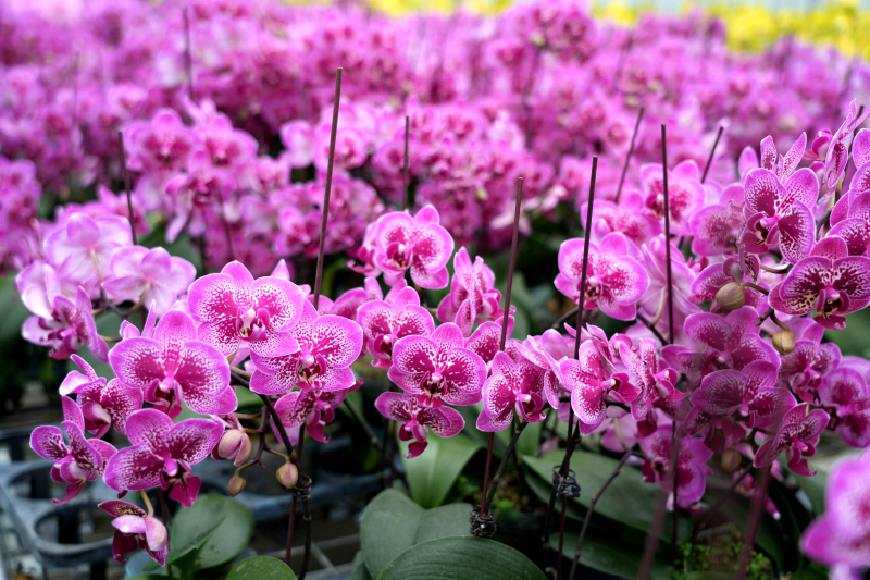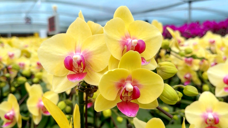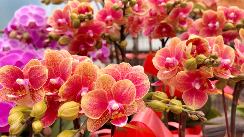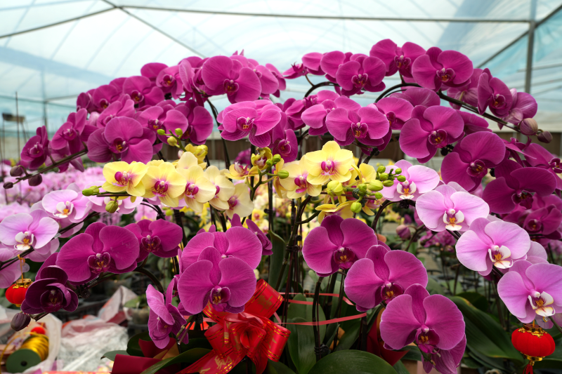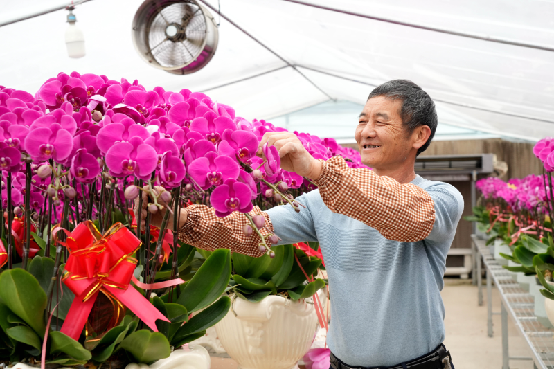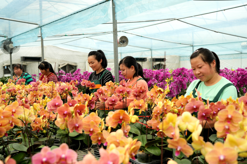 “我们不断摸索蝴蝶兰生长的‘秘诀’,从研发到组培,育苗到成花,形成了一个完整的产业链,由此带动更多群众增收致富。”据龙潭镇蝴蝶兰种植基地组培主管严鸿介绍,通过智能温室培植,利用蝴蝶兰的根、茎、叶等器官组织进行诱导、分化,培养出蝴蝶兰的种苗,经过一年多时间的培育,目前有20多个品种20余万株的蝴蝶兰相继盛开,长势喜人。一经上市,便受到了许多消费者的青睐,主要销往北京、上海等城市,同时也有不少当地消费者前往选购。