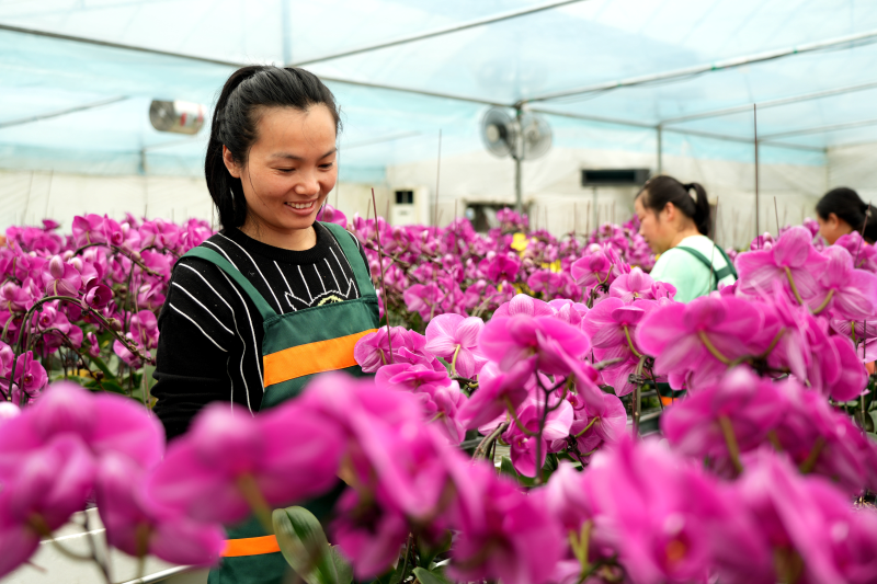 蝴蝶兰产业的发展,吸引600多名外出人员返乡创业就业,带动2000余名本地群众就业,蝴蝶兰年产值达到1.12亿元,当地群众年收入增加8000余万元。“现在,我们村水清,天蓝,空气质量非常好。我就在我们家门口的蝴蝶兰种植基地上班,一个月可以拿到3000多元工资,真的挺不错。”上西村村民罗美连说。
