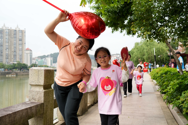 当天上午,参与家庭成员身着统一的服装,以春霭园作为起点和终点,沿着东门桥下行栈道进行亲子慢跑,沿途完成2站打卡,为“顶梁柱”妈妈助力。在跑步过程中,栈道两旁的爱心志愿者不断给选手送上祝福和鼓励。最终,所有选手都以饱满的热情,共同完成了全程近5公里的爱心之旅,领取了专属于个人的“最有爱证书”。