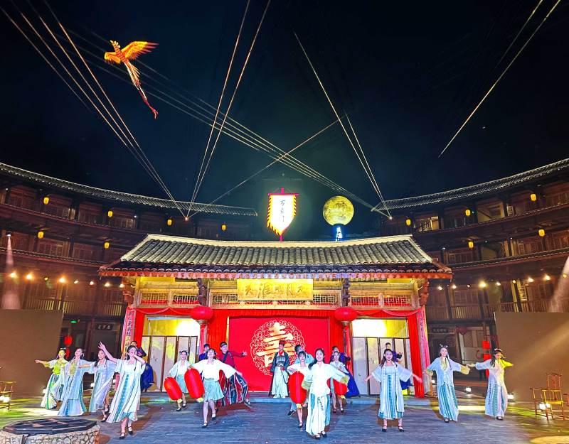 龙岩市文旅局、武夷山风景名胜区、漳州市博物馆、福建福旅先行智慧科技有限公司、福建省图书馆等单位就数字文旅建设成果进行交流发言。永定土楼还举行了沉浸式数字文旅项目《天涯明月刀》落成仪式,并上演“天涯共此楼”文艺节目。 |