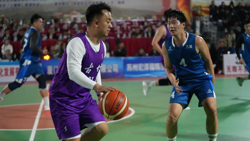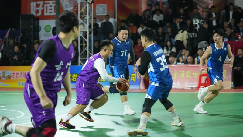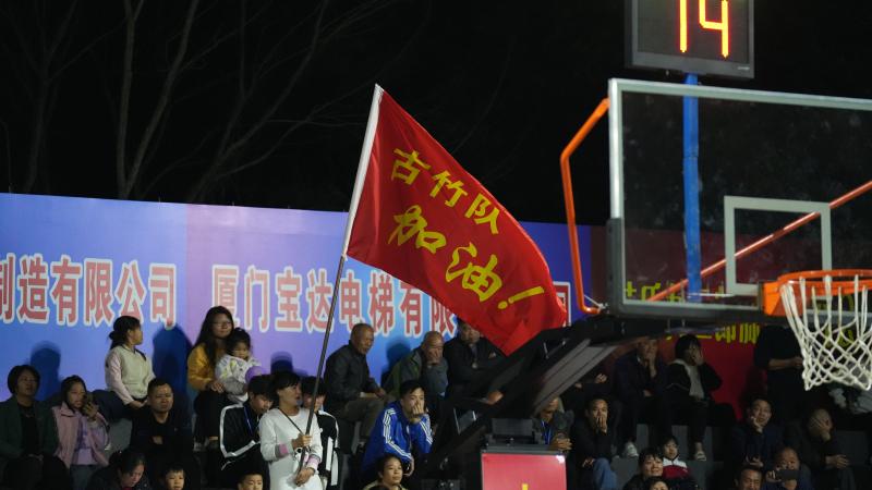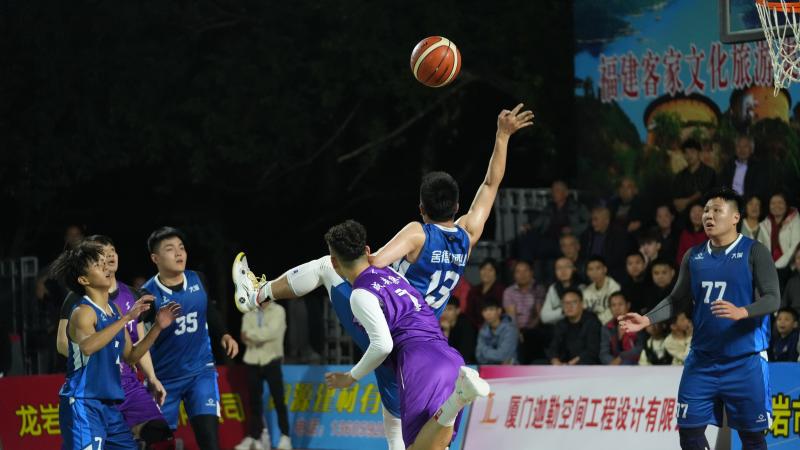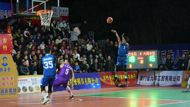 “哔……”哨响开球!现场,客家话“古竹队加油!”此起彼伏,比赛氛围瞬间点燃。古竹乡代表队和大溪乡代表队的队员们用强硬的身体对抗和精准的投篮,为现场球迷奉上精彩的比拼。东道主古竹乡代表队主场优势明显,不仅有“古竹版客家话”的加油声,还有小球迷挥舞着古竹队队旗。在比赛暂停间隙,绕场“跑圈”,逗得观众开怀大笑。