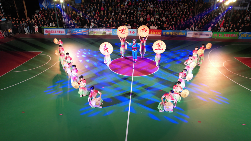 古竹乡时隔10年再次作为“土楼杯”男子篮球赛东道主,开幕式上的文艺节目尽显“古竹味”,精彩纷呈。瑶下斗笠在客家山歌中翩翩起舞,古竹手工陶器泡着古竹田洋村高山茶,在非遗节目“傀儡戏”上展示“古香古色”,古竹坪洋村舞狮《祥狮起舞土楼杯》博得阵阵喝彩……
