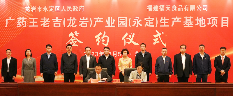 视频加载中... 永定新闻网讯(熊 川 江 舲 许泓宇)12月5日,广药王老吉(龙岩)产业园(永定)生产基地项目在永定区签约落地,这是龙岩市与广州市全面贯彻落实党中央、国务院决策部署和闽粤两省关于广州—龙岩对口合作工作要求的生动体现,也是两地携手推动高质量发展的又一个实质性成果,必将为推动广龙对口合作注入新活力、增添新动能。 广药集团总经理助理、广州王老吉药业党委书记陈伟平,广州王老吉大康产业有限公司党委书记、董事长、总经理翁少全,龙岩市工信局局长兰富雁,永定区委书记李强,区委副书记、区长李宏泰等参加并见证了签约。