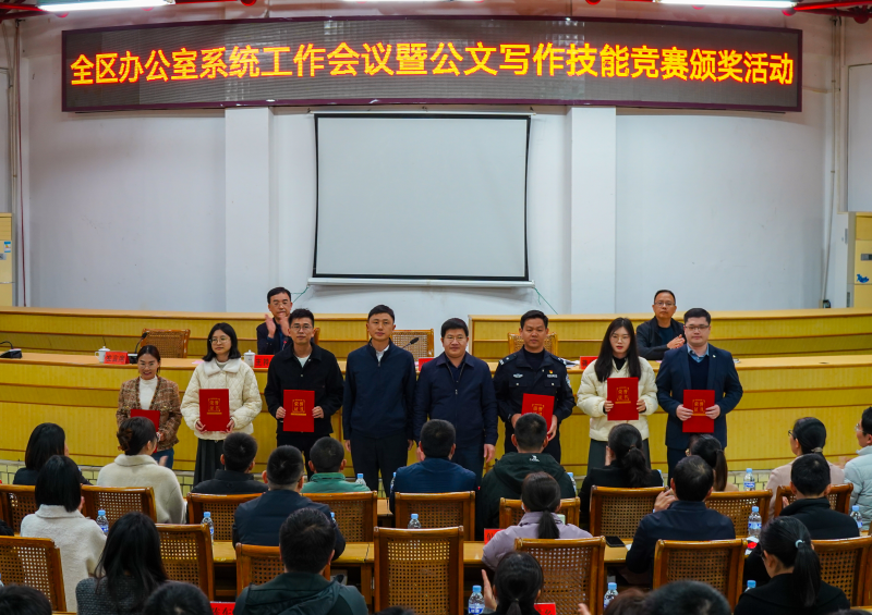 视频加载中... 永定新闻网讯(陈敏)12月27日,永定区举办办公室系统工作会议暨公文写作技能竞赛颁奖活动,动员广大干部职工加强理论学习,提高公文写作水平,增强履职能力,引导和激励青年干部在推进永定振兴发展高质量发展中担当作为、奋勇争先。区委副书记兰光、副区长龚泽祥参加并为获奖人员颁奖,部分镇街和部门作经验交流发言。