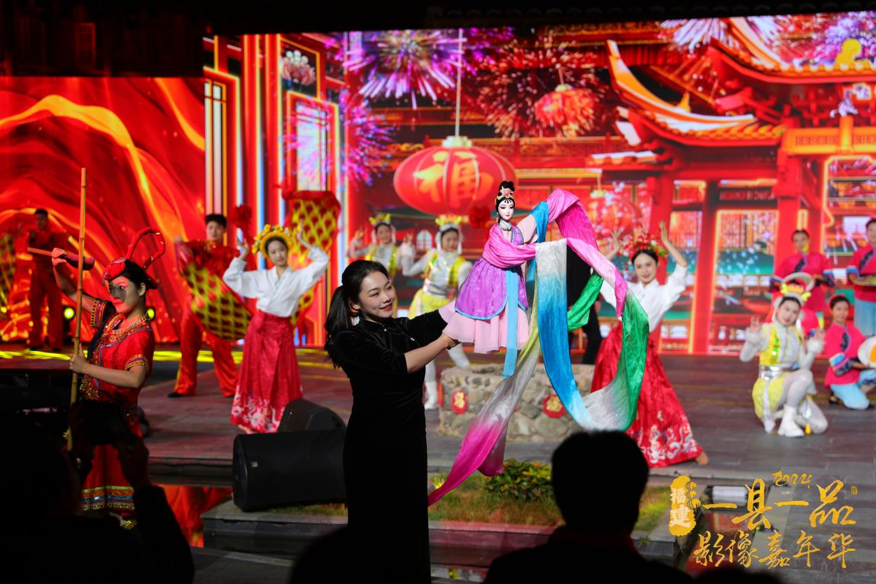 土楼内,裸眼3D、大屏环绕,光影交错。来自福建全省各县域首创的影像作品汇集于此,通过“闹元宵”方式,立体展现各地“一县一品”县域品牌新形象,营造具有福建县域特色又令人耳目一新的新春元宵氛围。