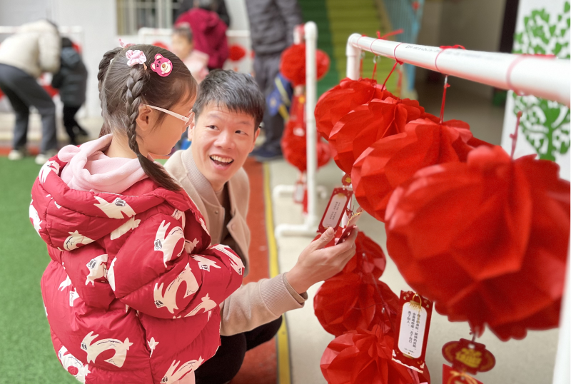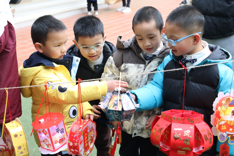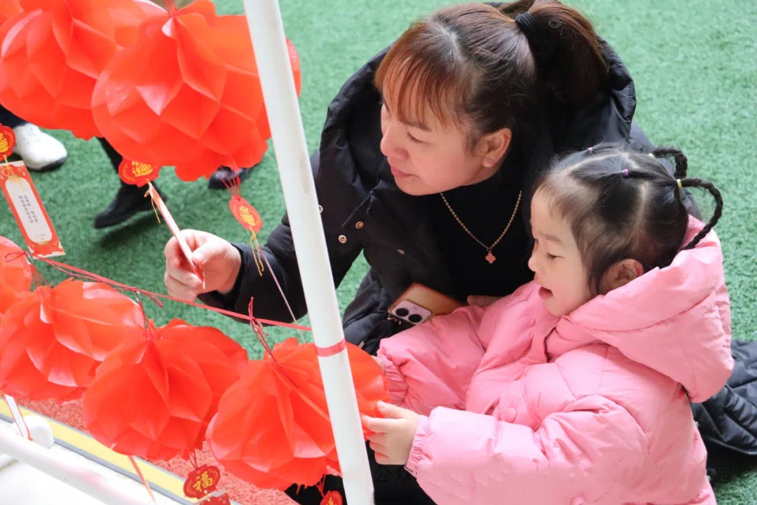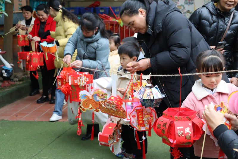 “猜灯谜”是中国传统的元宵节活动。大朋友小朋友在老师的引导下开动脑筋猜灯谜赢彩头,在边玩边学中感受着传统文化的乐趣。