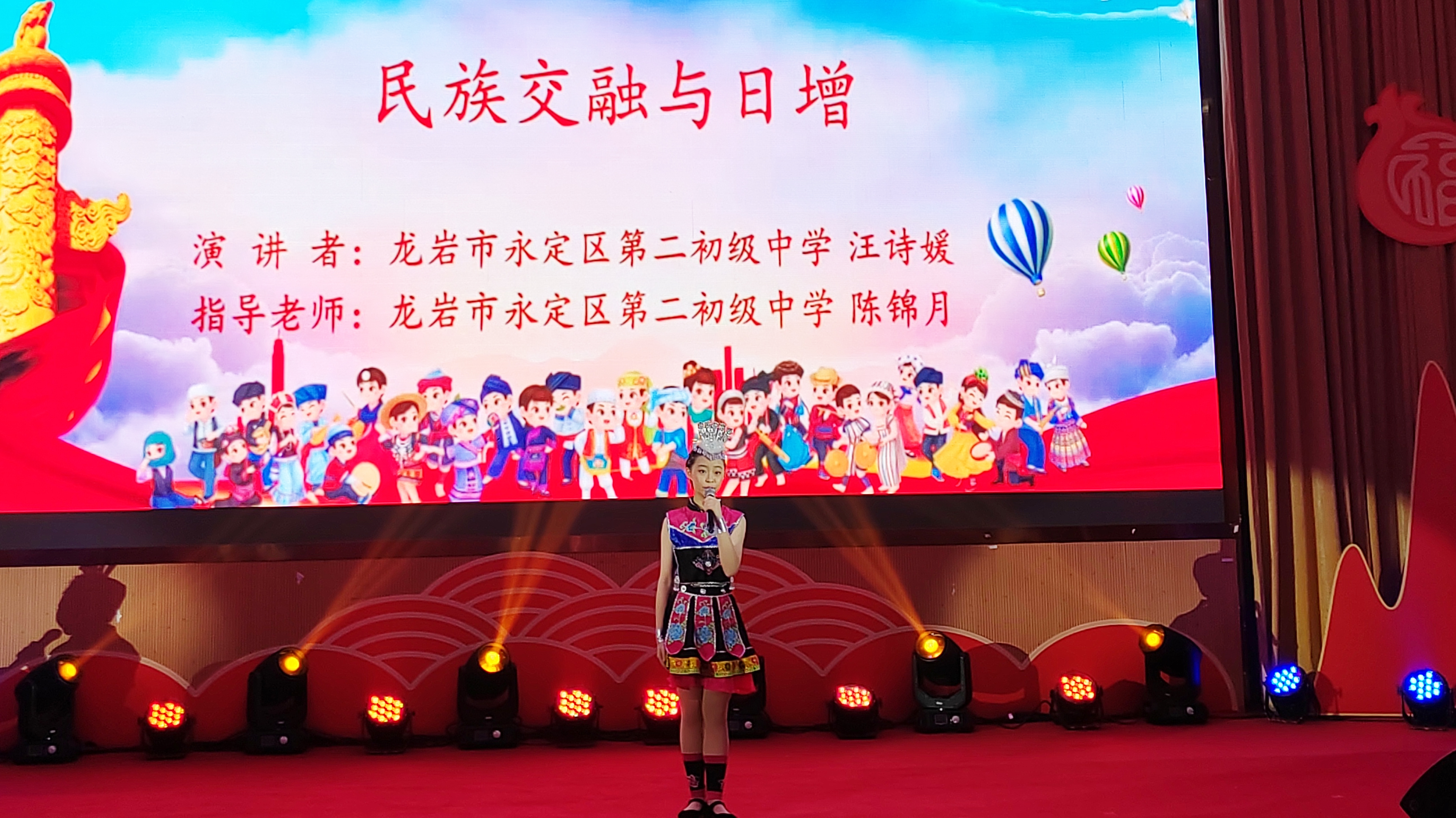 “通过参加活动,我深深地感受到中华民族的团结一心,休戚与共、荣辱与共、生死与共、命运与共;感受到民族交融与日增,石榴籽里共繁荣的景象。”汪诗媛应邀与其他组别的一等奖选手共同上台领奖,并以声情并茂的演讲,赢得阵阵掌声。 近年来,永定区教育系统认真学习贯彻习近平总书记关于加强和改进民族工作的重要思想、关于教育的重要论述,以“铸牢中华民族共同体意识主题月”活动为载体,深化铸牢中华民族共同体意识宣传教育,持续在全区中小学组织开展“一次主题思政课、一次主题党(团、队)日、一次主题文创作品展示、一次主题演讲、一次主题实践、一批手拉手结对子”等“六个一”活动,在广大师生中培树中华民族共同体意识,让铸牢中华民族共同体意识的“金种子”深埋广大师生心灵深处。 据悉,这次活动由中共福建省委统战部、福建省教育厅、民族与宗教事务厅、共青团福建省委联合主办,共收到152个作品,经专家评审评出了一等奖8项、二等奖20项、三等奖28项、优秀奖96项、特别奖6项和优秀组织奖10项。 |