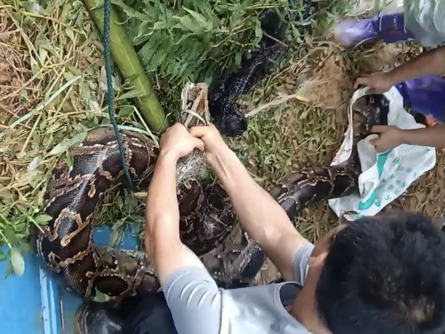 区林业局成功解救一条受困蟒蛇