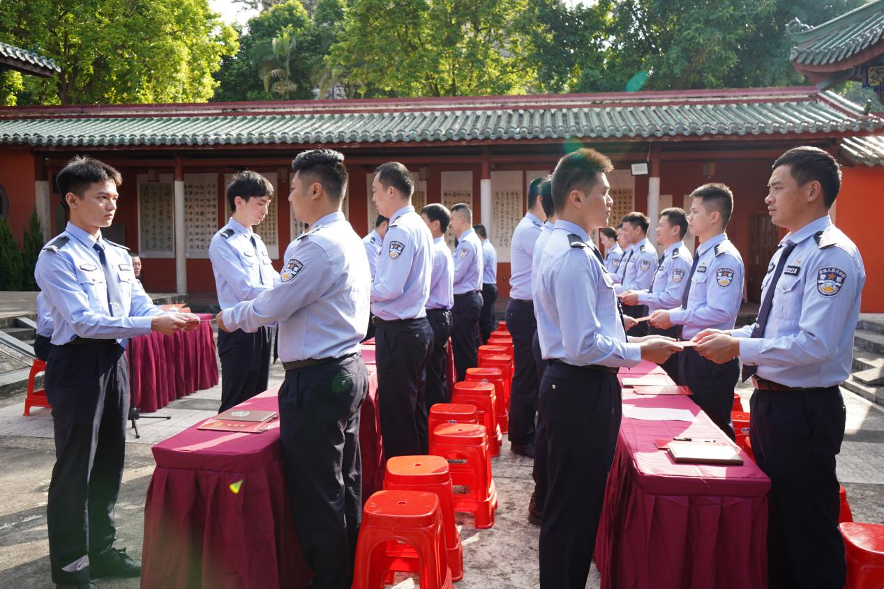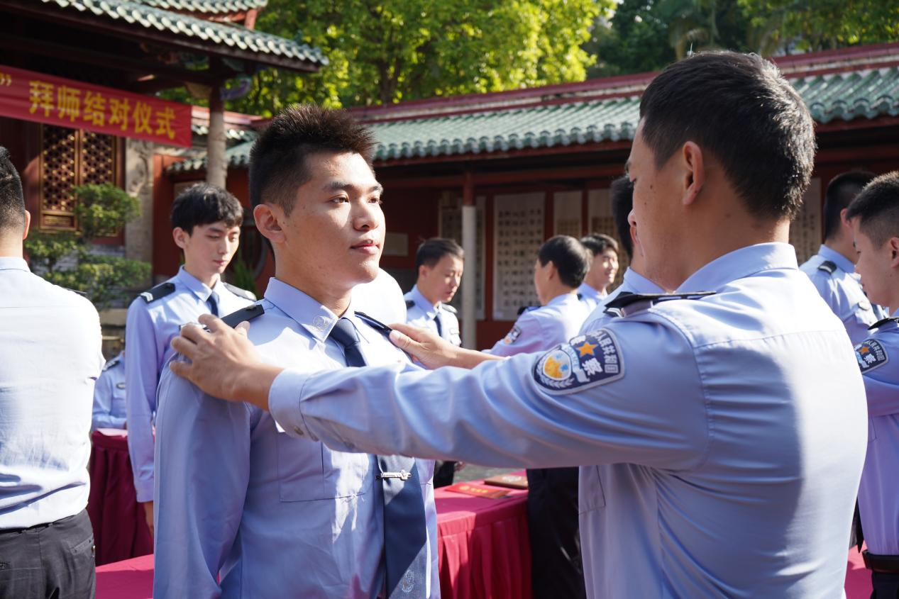 “伟大的祖国赋予我使命,复兴的民族给予我力量,忠诚的道路浴血荣光……”活动在威武雄壮的《中国人民警察警歌》歌声中开始,随后,全体民警面向警旗,举起右拳,重温《公安机关人民警察誓词》,表达他们坚定的信念、忠诚的决心和职责的担当。 在结对仪式上,指导警师与培育警徒互换了拜师帖和回徒帖,指导警师为培育警徒整理着装、赠送工作日志本,培育警徒向指导警师献花、敬茶,师徒代表分别做了表态发言,表达了警师尽心尽职倾囊相授,警徒不怕困难勤学苦练的决心与信心。