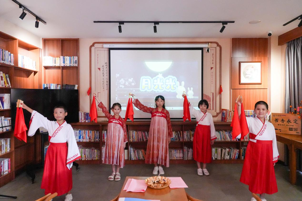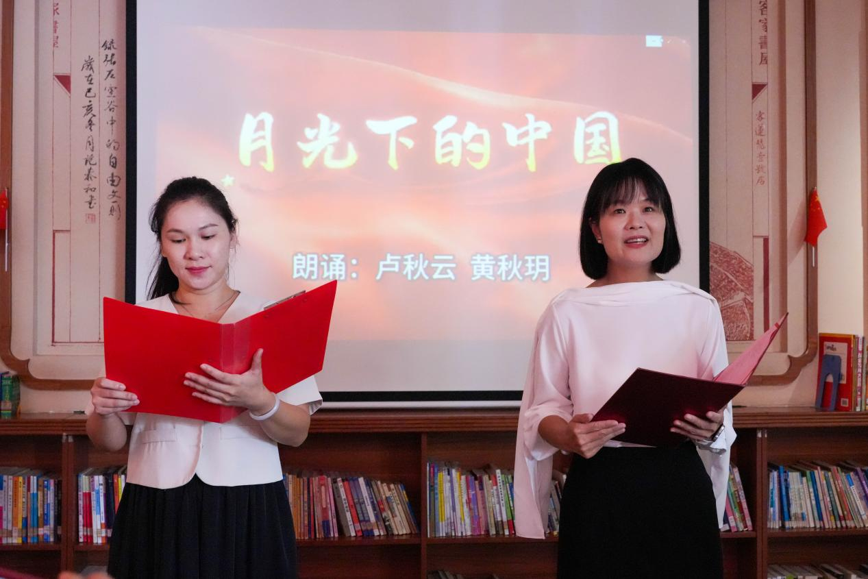 诗会现场灯光温馨,书香弥漫。32位表演者依次登台,17个节目形式多样,涵盖客家童谣、经典诗词、原创诗歌、客家山歌等,既有浓郁的本土特色,又饱含深厚的家国情怀。活动在客家童谣《月光光》中拉开帷幕,孩子们稚嫩清亮的嗓音唤起了观众对客家文化的亲切记忆;朗诵《这盛世如您所愿》以深情语调表达了对祖国繁荣昌盛的由衷赞美;《月圆土楼》则将土楼月色与客家乡愁娓娓道来,营造出“月照土楼、诗润人心”的优美意境。