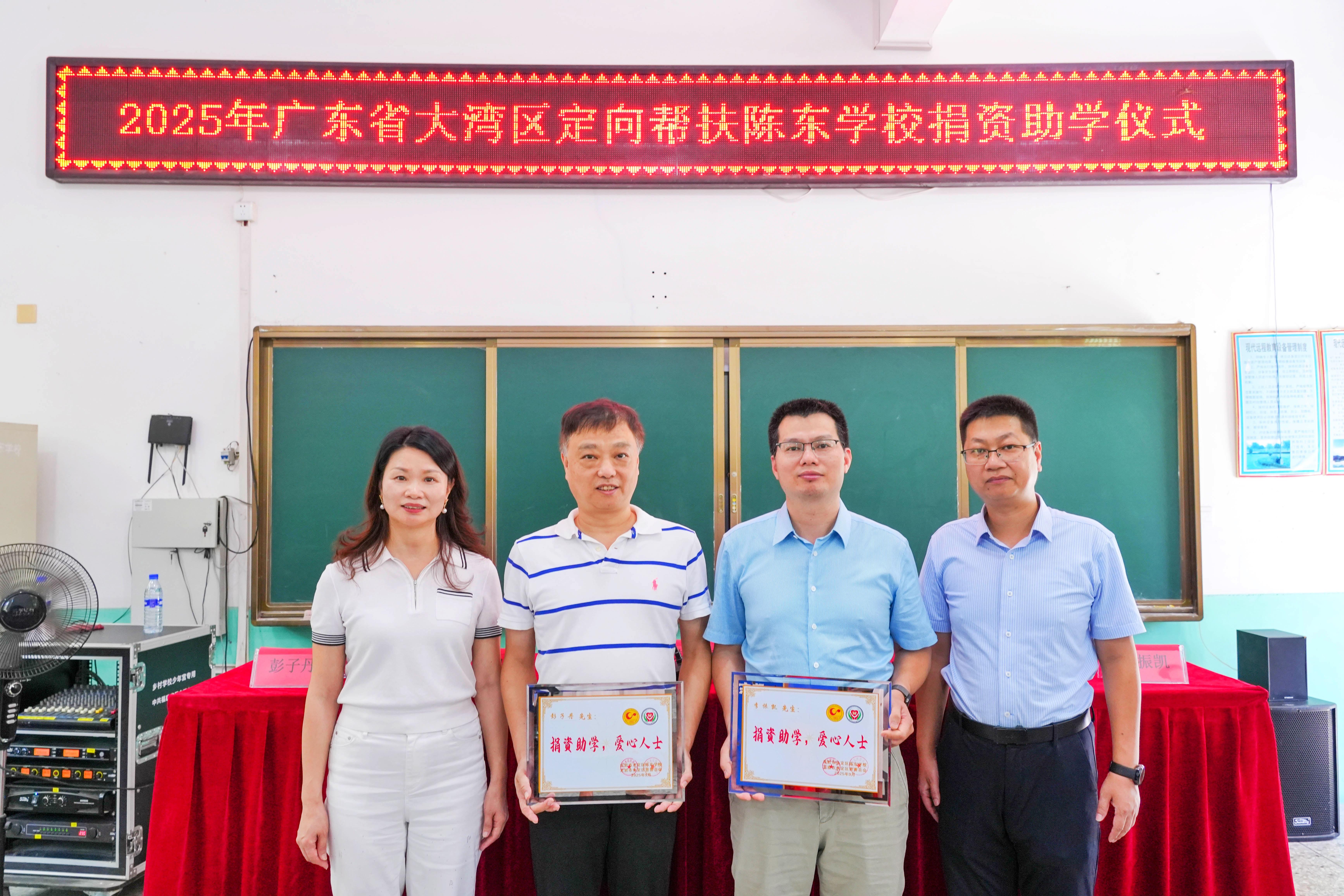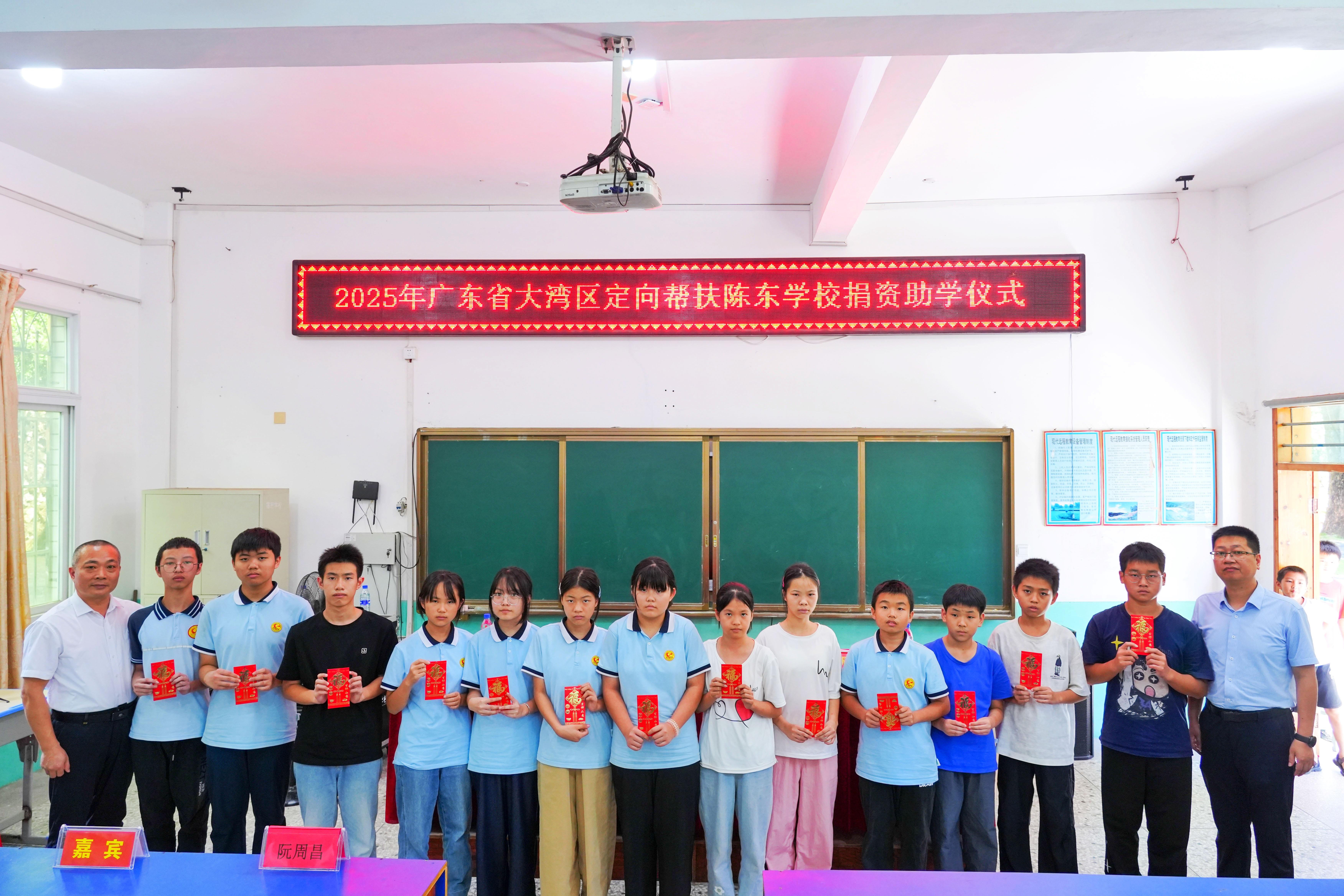视频加载中... 9月26日,陈东学校举行2025年粤港澳大湾区定向帮扶捐资助学活动。这场持续三年的爱心接力由该校杰出校友、原广东省人力资源研究会常务副会长兼秘书长陈国海教授发起,汇聚了大湾区众多爱心企业与人士的力量,为革命老区乡村教育发展注入持续动力。