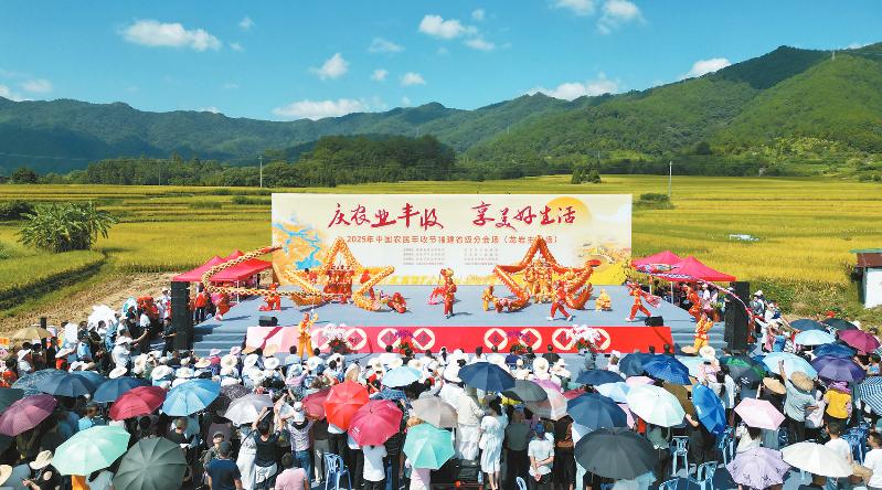 图为活动现场 通讯员 熊川 摄 9月28日,2025年中国农民丰收节福建省级分会场(龙岩主会场)活动在永定坎市镇文秀千亩稻田举行。福建省农业农村厅二级巡视员郑晓梅宣布活动开幕,龙岩市政府副市长邱开养致辞。 此次活动作为福建省2025年中国农民丰收节“1+N”系列活动的重要组成部分,以“庆农业丰收 享美好生活”为主题,融合农特产品展销、农机展示、农民趣味运动会、文创(非遗)展销、特色美食推介、文艺展演、体育赛事、助农直播等多元内容,吸引了众多农民群众与游客踊跃参与,全方位、多角度展现我市乡村振兴新风貌与农业发展新成果。 在永定区五大农特产品展示推介环节,永定牛、土楼柿、龙湖鱼、蝴蝶花、有机菜等优质农产品一一亮相,通过实物展示与讲解的方式,生动展现永定区农业特色产业的鲜活发展态势。在农业产业项目签约仪式上,4个重点农业产业项目集中签约,总投资额超3亿元。 活动由福建省农业农村厅、龙岩市人民政府主办,龙岩市农业农村局、永定区人民政府承办,全程以农民为主体,贴近乡村实际,既有展现农业发展的“科技范”,也有充满乡土气息的“烟火气”,不仅让参与者沉浸式感受丰收的喜悦,更在全社会营造起重视“三农”发展的浓厚氛围,为凝聚乡村振兴力量、推动农业高质量发展与和美乡村建设注入了崭新活力。