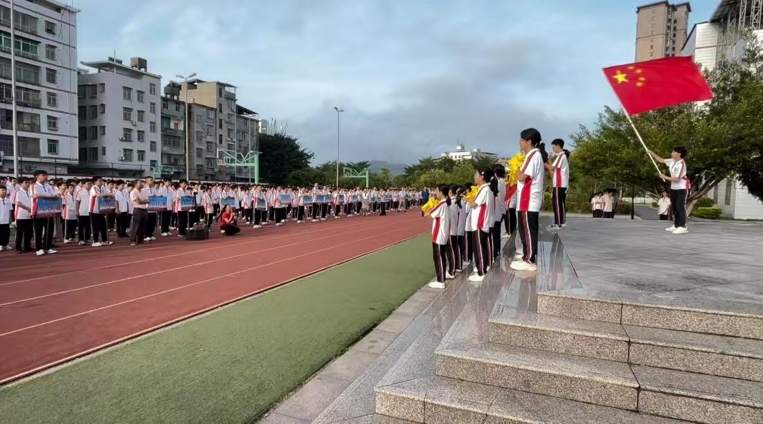 9月29日清晨,永定第二中学在学校操场举行“七十六载盛世华章”千人齐诵主题活动,庆祝中华人民共和国成立76周年,厚植青少年家国情怀。