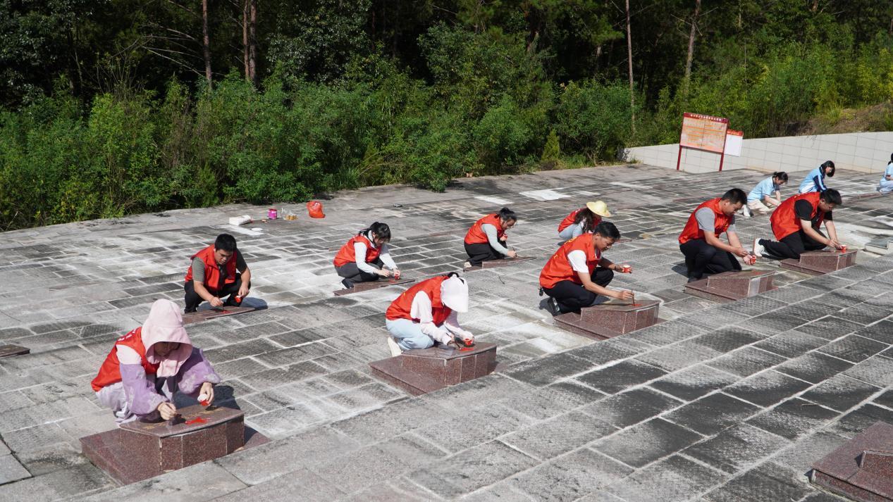 9月26日上午,陈东乡党委组织党员志愿者开展烈士陵园为烈士墓碑描红填金活动。