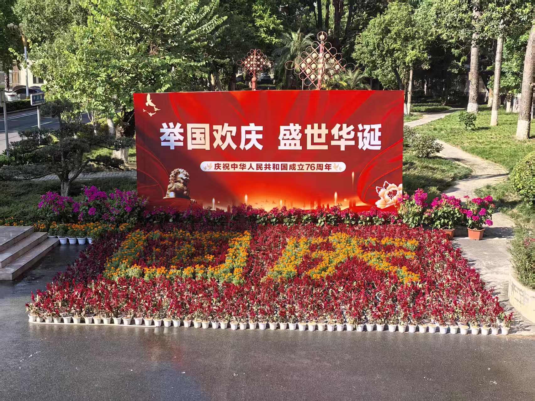 在区政府升旗台前,园林工人们正忙着搬运花箱、栽种花草。成百上千株孔雀草、鸡冠花等绿植在工人师傅的精心包装和编排布置下,红黄相接的“国庆”二字呈现在群众面前。 “使用花期较长且色彩艳丽的橙色孔雀草、黄色孔雀草、鸡冠花凤尾、鸡冠花赤壁、长春花、三角梅等共2万余株花卉装扮城市,让城区洋溢着浓浓的国庆氛围。”永定区园林服务所副所长江伍雅表示。
