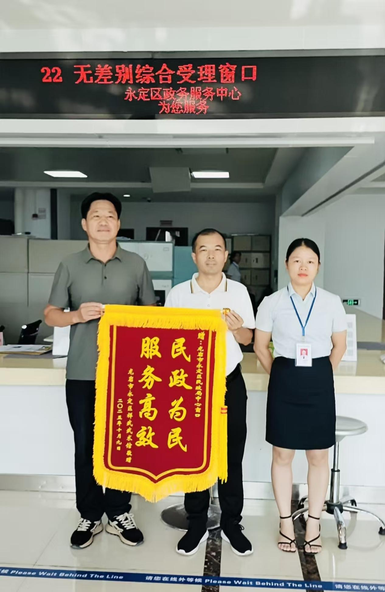 视频加载中... 近日,龙岩市永定区祥武武术馆负责人专程前往区政务服务中心民政窗口,将一面印有“民政为民,服务高效”的锦旗送至工作人员手中,对窗口提供的优质服务表示感谢。