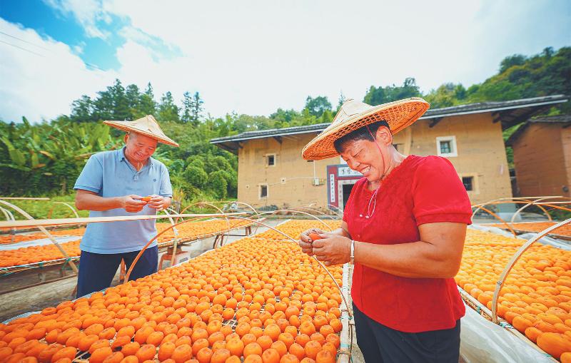 【闽西日报】永定区陈东乡城东村村民正在铺晒柿子