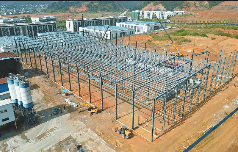 图为项目建设现场。 连日来,在永定工业园文秀产业园内,总投资20亿元的国动通信装备制造基地二期项目施工现场吊机高耸、运载车穿梭,数百名工人正抢抓施工黄金期,全力推进主体厂房钢结构建设。截至目前,该项目已完成投资10.8亿元,占总投资的54%。“项目预计下月中旬可完工,12月底进入试生产。”项目有关负责人介绍。 据了解,该项目是省重点项目国动通信产业基地建设项目子项目,项目聚焦电力铁塔、通信铁塔等钢结构产品制造及热镀锌加工,镀锌车间配备大型锌锅,设计年镀锌加工能力达8万吨。先进的工艺与稳定的产能可为各类钢结构产品提供高质量镀锌服务,满足通信装备制造的高标准需求。 作为永定国动通信产业基地的核心组成部分,该项目建成后,将进一步推动当地数字智造产业发展,提升区域通信装备制造水平,为数字经济高质量发展注入新动能。“我们以‘全周期服务+全要素保障’为核心,推动国动通信装备制造基地在文秀园区高效建设,通过政策直达、基建升级、金融赋能及人才驱动,构建‘政策-基建-产业’协同生态。”永定工业园区管委会副主任张林锋表示。