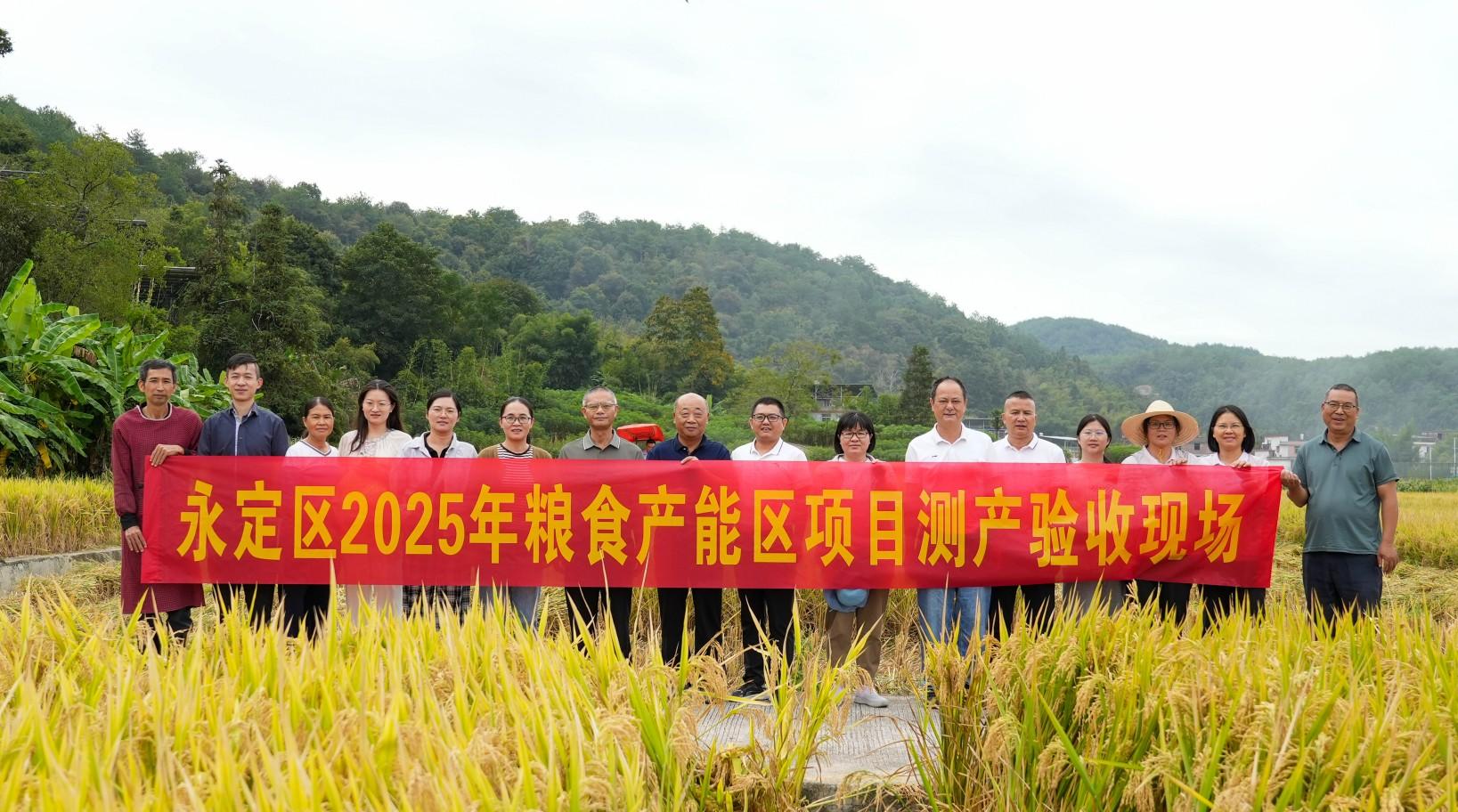 “从今天现场测产三块田的结果来看,该示范片的最高单产达到每亩740公斤,平均单产达到了685公斤,达到了我们的预期目标。”永定区农业农村局农技站站长朱海彬介绍,近年来,永定区通过实施粮食产能区、粮油规模种植主体单产提升、优质稻示范推广等项目,示范推广优质高产新品种、测土配方施肥、病虫害统防统治、全程机械化生产等“五新”技术,努力实现主导品种、主推技术、主力机型的“三主”融合,为提升当地粮食产能、增加粮食产量、保障粮食安全打下了坚实的基础。