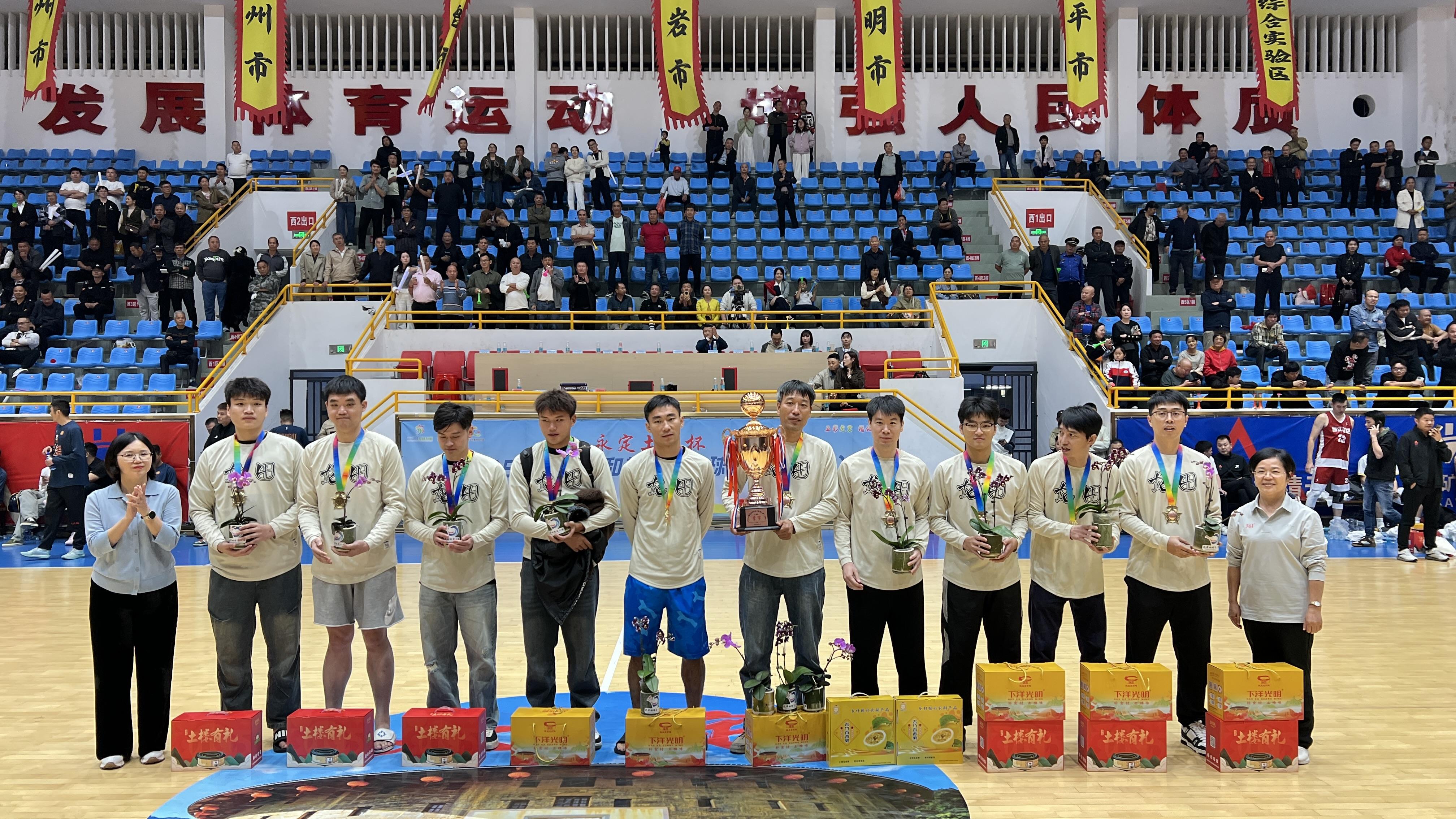 颁奖环节创新采用“荣誉+产业”双赋能模式。甲级队冠军泉州池店队不仅收获象征荣耀的奖杯与牌匾,更获赠永定牛(活体大水牛)、永定土楼模型及“土楼有礼”大礼包,实现竞技荣誉与乡土产业的深度绑定;亚军、季军队分别收获上杭槐猪、武平象洞鸡等农特产品礼包,让荣誉奖品成为乡村产业的“流动广告”。