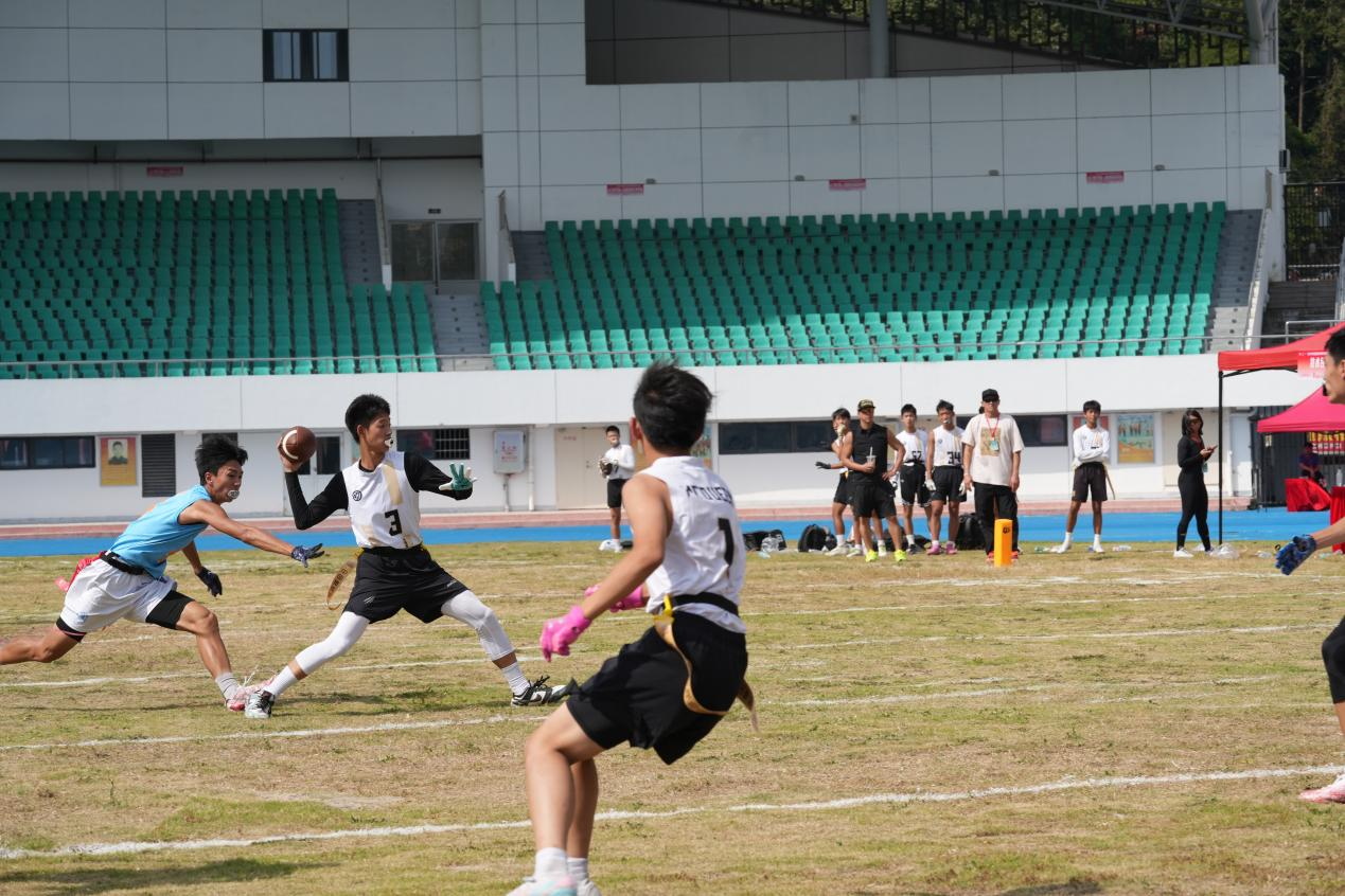 腰旗橄榄球是源于美式橄榄球的非冲撞简化项目,以“不冲撞、重技巧”为核心特点,无需专业护具,安全性高。比赛每队上场5人,场地为设得分区的长方形,分上下半场进行;进攻方需在4次机会内推进10米,通过达阵(6分)及附加分得分,防守方以扯掉进攻方腰旗终止进攻。该项运动兼具趣味性与竞技性,能有效锻炼青少年团队协作、战术思维和反应能力,近年来在青少年群体中迅速普及。