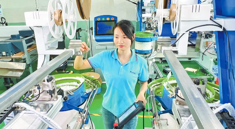 连日来,龙岩市富鑫达电子制造有限公司生产车间内,工人正在自动化生产线上检测产品。今年以来,该公司已投入资金1600多万元用于购置自动化生产线,用于专业线束加工和连接器设计制造。截至目前,已新增设备20余台,生产效率大幅提升,企业今年产值有望提高20%,突破8500万元。