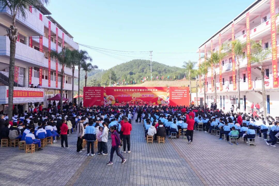 视频加载中... 11月29日,创办于 1945 年的永定湖雷中学迎来建校 80 周年华诞。区领导林寿杨、张树焜、赖大彬、邱小梅及来自各地的历届校友、上级领导、兄弟学校代表与全校师生欢聚一堂,共忆峥嵘岁月,共话母校发展,共绘未来蓝图。