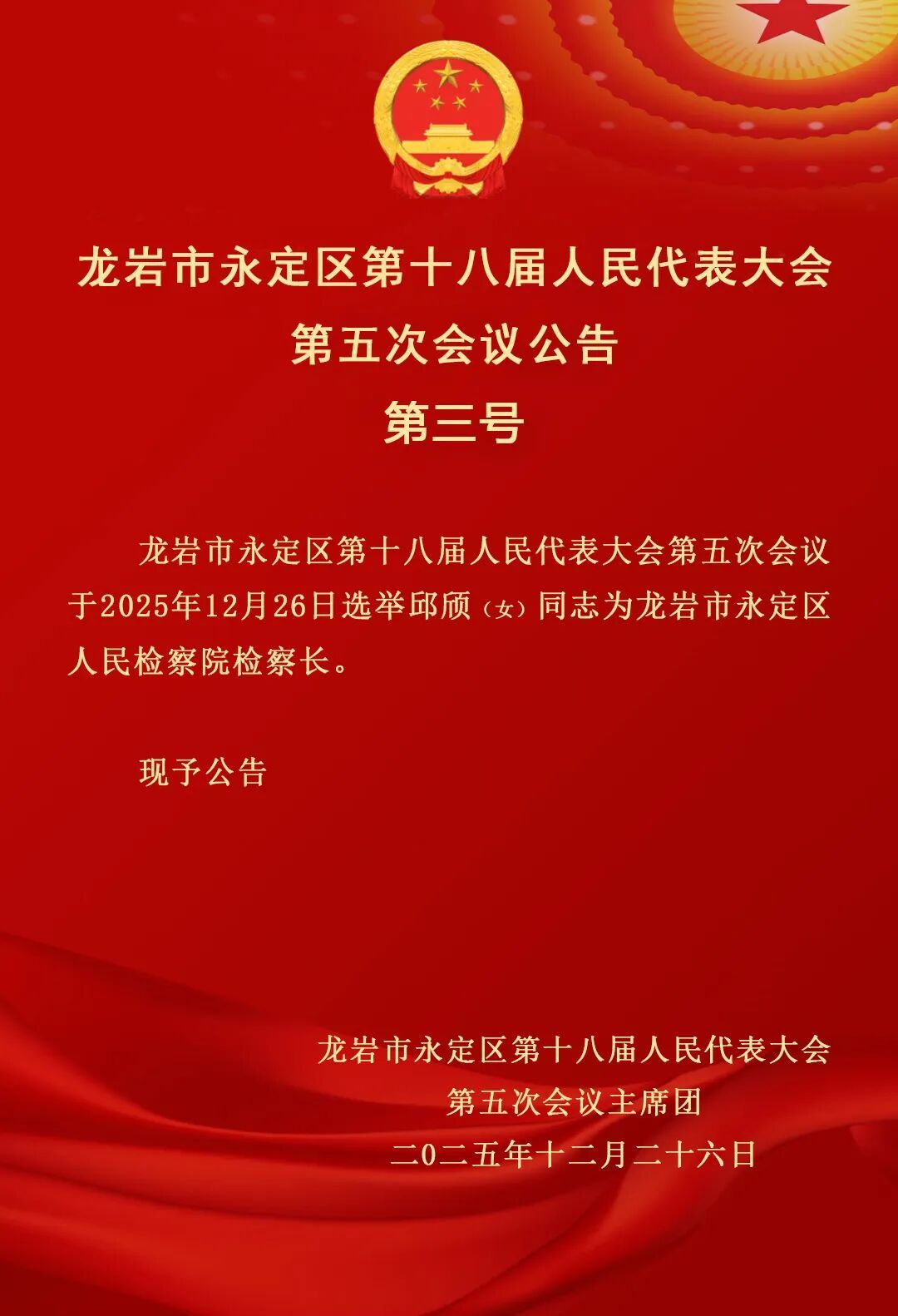 龙岩市永定区第十八届人民代表大会第五次会议公告(第三号)