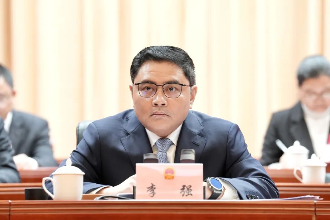 大会执行主席李强在主席台前排就座