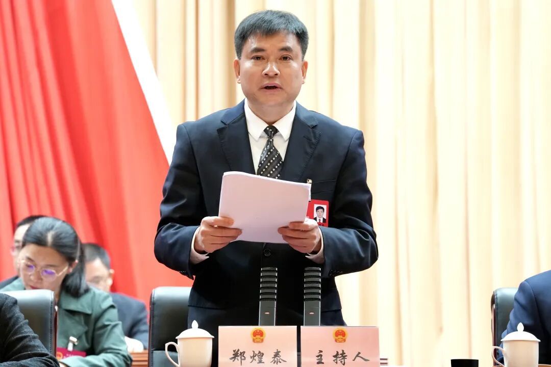 区人大常委会主任郑煌泰致闭幕词,他说,会议期间,各位代表肩负全区人民的重托,以高度的政治责任感和饱满的履职热情,议发展大事、履为民之责、献务实之策,充分体现了心系永定的责任担当和昂扬奋进的精神风貌。