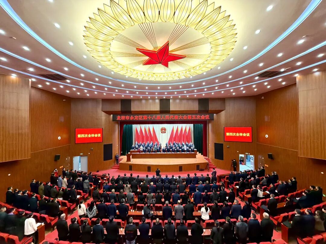龙岩市永定区第十八届人民代表大会第五次会议 永定新闻网讯(熊川 陈敏 陈景彬 张文炳 吴道明 林新腾 邱颂桥)12月26日下午,龙岩市永定区第十八届人民代表大会第五次会议举行第四次全体会议。在圆满结束各项议程后,大会胜利闭幕。