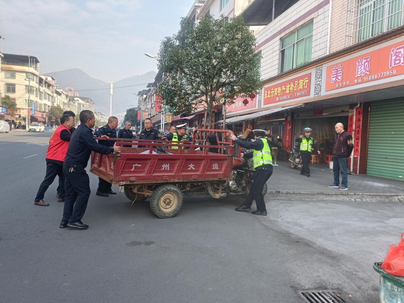 行动聚焦集镇占道经营、车辆乱停乱放等突出问题,以集镇主次干道、农贸市场周边等重点区域为突破口,采取“教育为主、处罚为辅”的原则,推行“劝导+规范”的柔性执法模式。执法人员逐户上门与商户面对面沟通,耐心讲解市容管理相关规定,引导经营者自觉规范经营、退路入店;对违停车辆车主进行现场劝导,指引其前往指定区域有序停放,有效化解交通堵点;同步开展卫生死角清理、违规杂物清运工作,全方位清除环境“顽疾”,让集镇既有生活气息的“烟火气”,更添文明有序的“新颜值”。 “以前集镇路边摆摊的多,车子乱停,走路都费劲,现在整治后清爽多了,看着就舒服。”家住集镇的居民卢先生望着整洁有序的街道,难掩满意之情。 “我们开展联合整治,不是为了处罚,而是希望通过劝导规范,让大家养成文明习惯,一起把集镇环境打理得干干净净,让全镇百姓过个舒心年。”龙潭镇综合执法大队大队长李庆柱介绍,今年以来,龙潭镇以提升集镇精细化管理水平为核心,以片区执法协同共治为抓手,常态化推进环境整治工作。通过部门联动、柔性执法、长效管护,紧盯占道经营、车辆违停、环境卫生等关键环节,持续改善集镇人居环境;深化片区执法协作,打破区域壁垒,实现执法资源共享、整治成效互认,推动全镇环境面貌提档升级。 “环境整治是一项长期工程,没有休止符。”龙潭镇党委书记张正锋表示,将立足片区执法协同联动机制,进一步整合镇域执法力量,强化跨片区联合巡查与执法,推动整治范围向各村组延伸,健全“发现-处置-反馈-巩固”的闭环管理体系。同时,广泛发动群众参与环境治理,大力倡导“人人讲文明、户户爱整洁”的社会共识,以精细化管理绘就宜居宜业的美丽龙潭新画卷,持续提升群众的幸福感和满意度。
