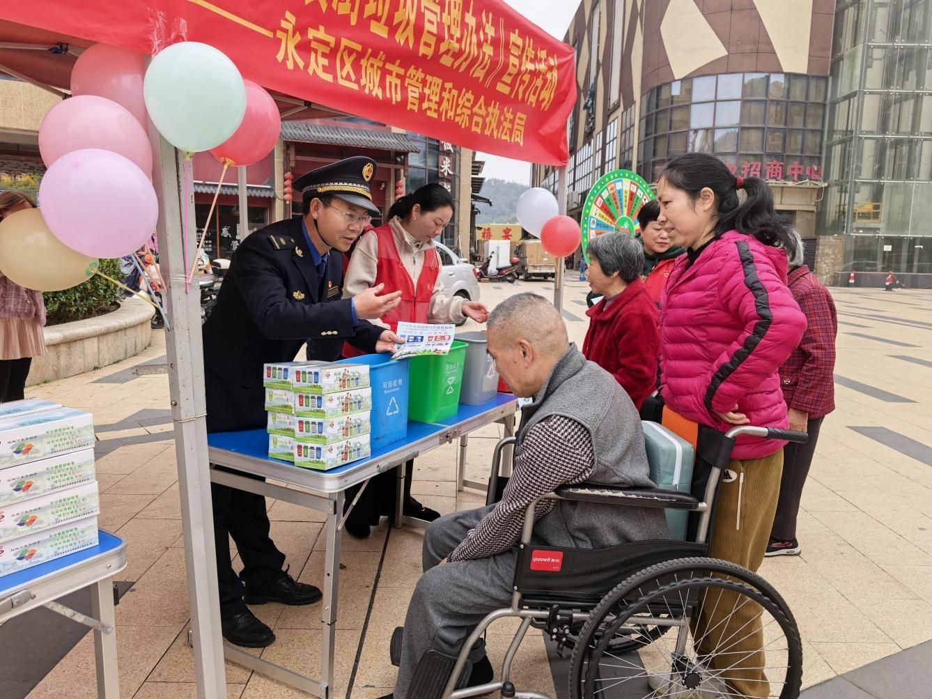 视频加载中... 1月20日上午,永定区城市管理和综合执法局联合凤城街道办事处,共同开展“法治护永·分类同行——让垃圾管理法规走进千家万户”主题宣传活动,以多元形式让法规知识扎根基层、惠及民生。