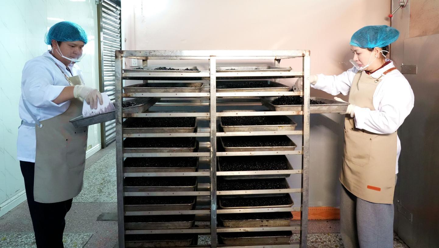 曾几何时,永定炒黑豆因未纳入小作坊生产目录,面临资质不全、规模难扩的发展瓶颈。2025年,永定区市场监管局主动靠前服务,推动炒黑豆正式纳入《龙岩市食品生产加工小作坊生产加工食品品种目录(2025增补版)》。各乡镇街道顺势借力“一村一品”政策,引导村民规范生产流程、严控产品质量,如今,已有多家经营主体成功取得小作坊生产资质,实现“持证合规生产、提质稳步增收”。在坚守古法的基础上,手艺人还研发了当归、红糖姜艾草等多款风味新品,搭配密封包装与溯源二维码,通过电商平台、“金砂有礼”展销中心等渠道走出乡村,成为永定一张亮眼的特色伴手礼名片。