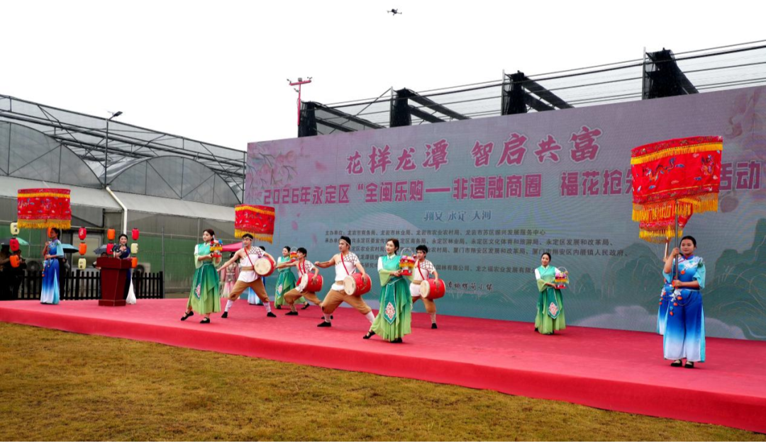 视频加载中... 2月1日,为期三天的2026年永定区“全闽乐购—非遗融商圈 福花抢先GO”活动在龙潭镇枫林村乡村文化会客厅圆满落下帷幕。活动创新构建“商务+文旅+农业”三维融合模式,成为永定区激活消费潜力、传承客家文化、助力革命老区乡村振兴的有力抓手,为市民游客奉上了一场兼具文化厚度、消费热度与新春温度的农文旅盛宴。