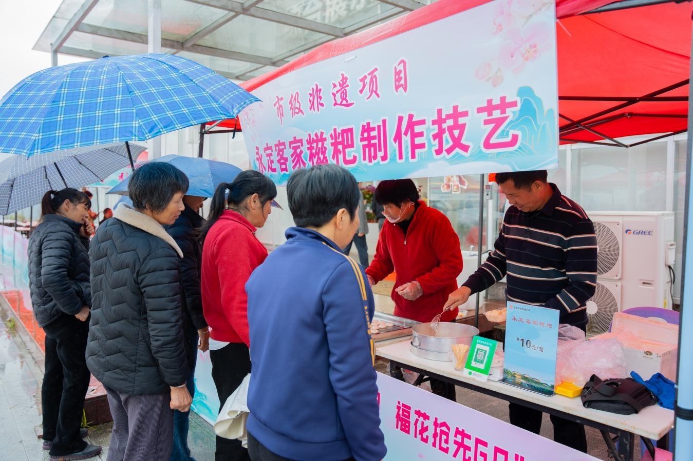 多元融合,打造沉浸式文化消费新场景 活动深挖永定产业、生态与文化资源禀赋,联动广州、厦门等地区优质资源,汇聚龙岩“五朵金花”(蝴蝶兰、富贵籽、兰花、杜鹃花、山茶花)及广州红掌、非遗传承人、美食商户等多方力量,构建起“文化展示+消费体验+互动参与”的多元场景,形成“多方协同、合力兴产”的良好态势。尽管活动期间遭遇持续降雨,但市民游客的参与热情丝毫不减。冒雨赴约的身影穿梭在活动现场的各个角落,让这场新春消费盛会更添同心向暖的温情底色。