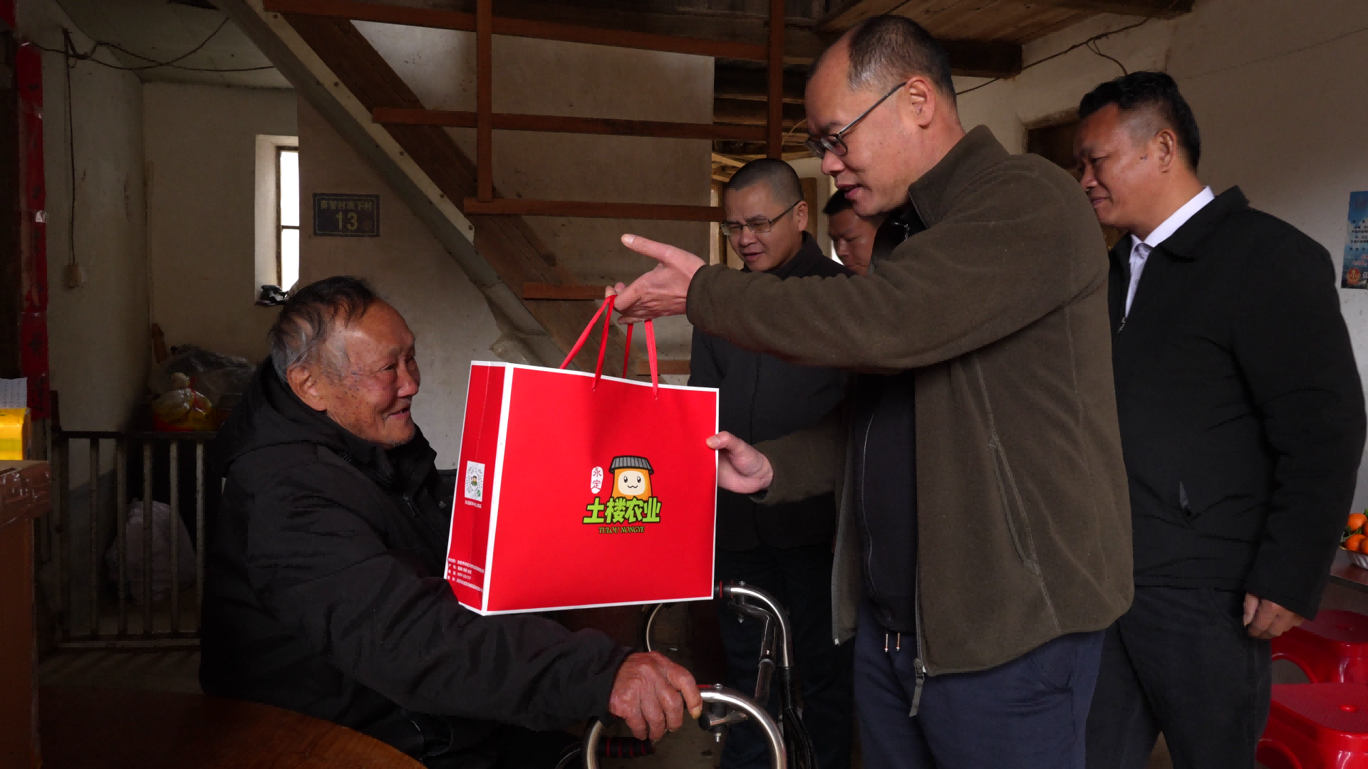 赛智村是永定区融媒体中心挂钩驻点村。当天,中心联合永定区农业农村局、区红十字会、土楼农业、红土地公益协会等单位和组织带着筹资到的慰问物资等送到村里。