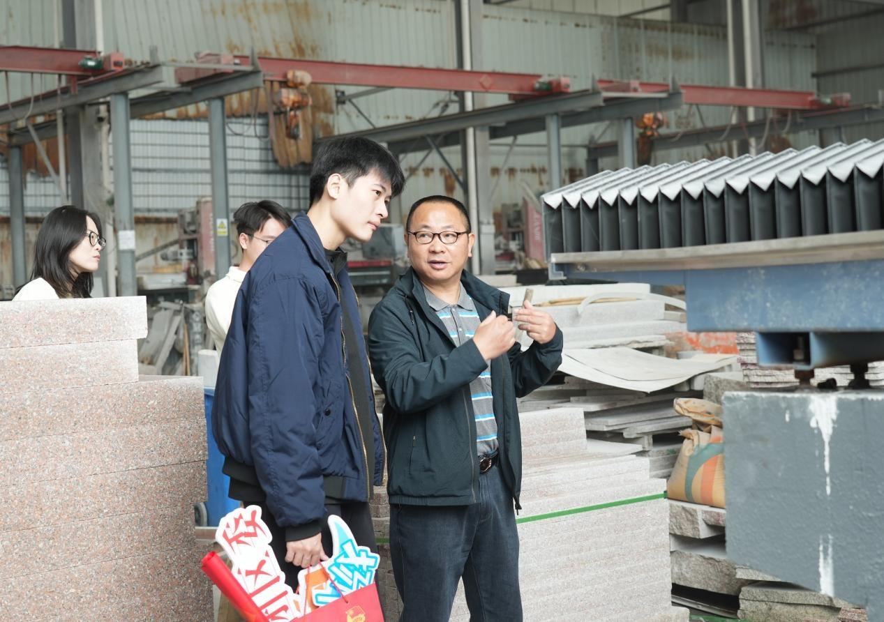 在永定红生态实践展示中心,学子代表全面了解永定红石材循环经济发展历程、生态保护成果与产业升级规划。在2号正磊石业、18号鑫运源建材等两家“新矿业”代表企业,学子代表近距离观摩石材加工流水线、绿色生产工艺与资源循环利用技术,实地感受家乡矿业从传统开采向“生态化、智能化、品牌化”转型的生动实践。看着生产线高效运转、废弃石材变废为宝的循环模式,学子们纷纷表示,家乡矿业的绿色发展理念与创新实践令人振奋,进一步坚定了用专业知识助力家乡建设的决心。