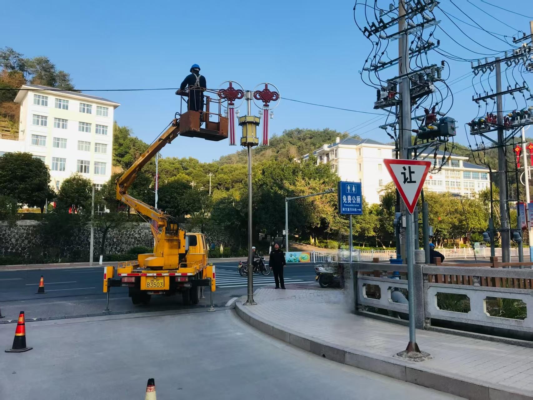同时,工作人员通过实行“夜间巡查+白天维修”闭环管理机制,夜间亮灯排查故障,白天精准维修整改,实现快速响应、高效处置,全力确保“路灯故障不过夜、安全隐患零遗留”,让每一盏路灯都稳定发光、每一条道路都明亮通畅。 结合新春氛围营造,区城综局同步对城区主次干道、重点路段开展节日亮化专项维护,精心检修、加固中国结等新春装饰,将传统民俗韵味与现代城市风貌有机融合,串联起一条条喜庆靓丽、连贯协调的新春景观带。一盏盏明亮路灯映照着归途,一串串火红装饰烘托着年味,让永定城区夜景更具烟火气、更添新年味,为新春佳节勾勒出最温暖、最靓丽的城市风景线。