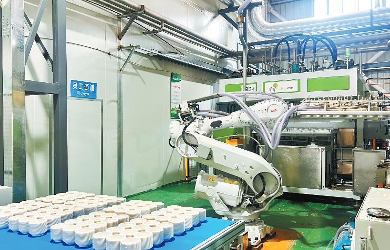 图为刚刚投入运行的自动化生产线 连日来,位于永定区的青橄榄环保科技有限公司植物纤维提取中试车间内,一派紧张有序的生产景象。源源不断的竹纤维从崭新的生产线上流出,标志着该区大健康产业重点项目——全降解生物基材料的中试工作取得关键性突破。 “生物基材料中试的成功运行,不仅为永定丰富的竹木资源找到了高附加值、可持续的转化路径,更通过构建完整的绿色产业链,为产业转型升级、实现‘双碳’目标注入了强劲的‘绿’动能。”该公司办公室负责人钟华说。 据介绍,青橄榄环保科技为深耕“以竹代塑”绿色降碳领域的先锋,始终秉持“科技创新,创造美好”的核心发展理念,专注于植物纤维可降解产品的研发、生产与服务,致力于构建“可再生原料-绿色生产-循环利用-自然降解”的全链条绿色制造模式,积极践行循环经济理念。 聚焦国内旺盛的市场需求,青橄榄公司研发生产的产品线涵盖可降解一次性餐包(包括盘、碗、餐盒、杯子、杯盖等纸塑产品)及工包制品(如3C配件包装、食品包装、化妆品包装等)。其产品不仅具备抗高温、耐水耐油、可微波、可冷冻、无毒无害等优异使用性能,更拥有可回收再造纸、可堆肥降解等多重环保优势,可有效替代传统泡沫、塑料包装,广泛服务于餐饮、工业、食品、美妆等多元场景。 该项目于2025年正式立项,青橄榄公司与行业领先企业深圳百事达达成战略合作,成功引进生物基植物纤维提取核心专利技术。项目充分发挥永定本地丰富的竹木资源优势,旨在逐步形成“竹木种植-原料绿色低碳加工-纸模塑产品生产-回收再利用”的完整产业生态闭环,并规划构建“设备制造-模具生产-物流园-供应链服务”的全产业链条。凭借过硬的产品品质,青橄榄已成功进入山姆会员店、美团、喜茶、星巴克、麦当劳等国内外知名品牌供应链体系,以显著的市场示范效应,有力推动行业从传统塑料向绿色可降解材料转型。