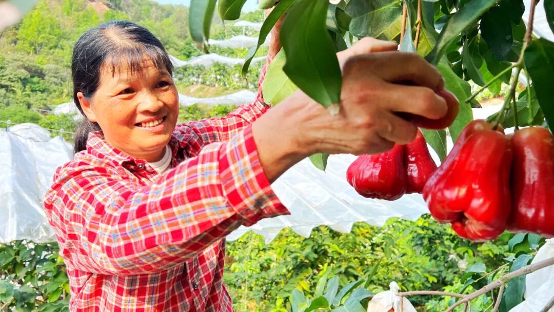 “第一批春果在三四月,第二批夏果在五六月,第三批秋果避开高温,错峰上市。”温小秋算了一笔账,这“三度”挂果,不仅填补了市场空白,更让效益翻番。按照目前的产量和行情,她家种植的300多棵莲雾树,年收入轻松突破80万元。
