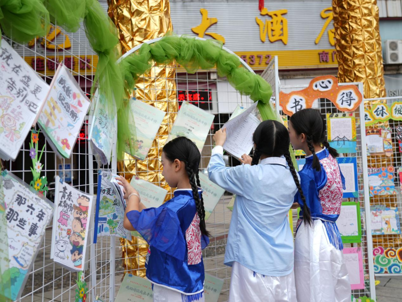 “从小我的爸爸妈妈就陪我阅读过各类的古诗词,以及四大名著。俗话说腹有诗书气自华,只有每天的日积月累才能演出最像的李白,在这次的大阅读中,我成功地把热爱化为了舞台上的自信,我们的传统文化真了不起!”《将进酒》小演员王锴旸表演完后开心地说。 “在这次大阅读活动中,我不仅看到了很多优秀的阅读小报,还在诵读展演中进一步了解了家乡的土楼文化。”实小六(5)班 汪禹杭告诉记者,今天与诗仙李白进行了一场跨越千年的时空对话。每天都有读书的习惯,在书香中成为一名有文化底蕴的新时代学生。 现场除了不限时免费阅读外,还有读书主题签名墙、“好书推荐”留言互动区、爱心图书捐赠区,参与者完成互动即可领取阅读主题小礼品。大家在巡展书场观摩中,沉浸式感受浓厚阅读氛围,实现了文化与阅读的深度融合。