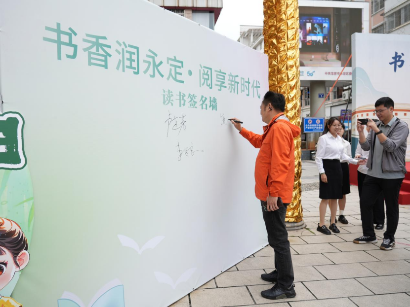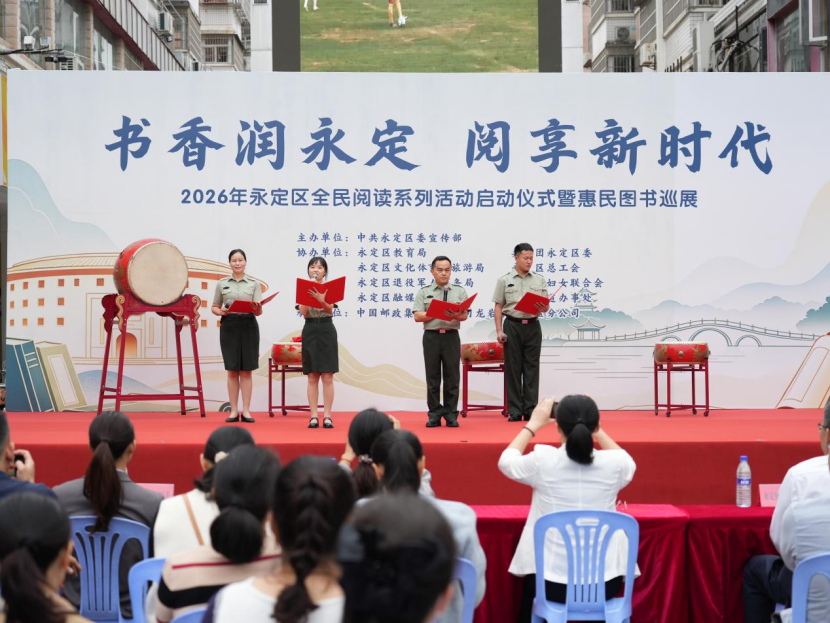 视频加载中... 4月24日,“书香润永定・阅享新时代”永定区2026年全民阅读系列活动暨图书巡展在城区南门商贸广场启动,区委常委、宣传部部长卢连芳参加。